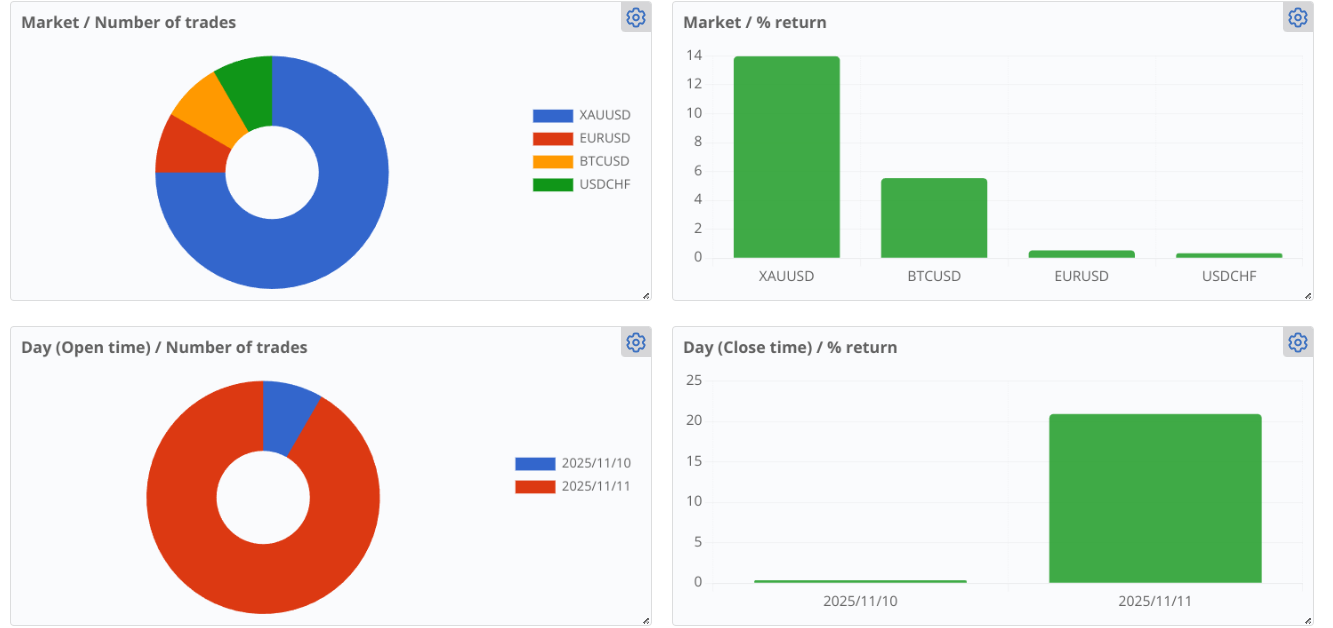 There is an important part in the daily and all-time statistics and this is where I should check the results of each EAs and Fortesting strategies. In manual trading, I can’t add magic number to a trade, but it can help me to see how much profit was made by each bot.